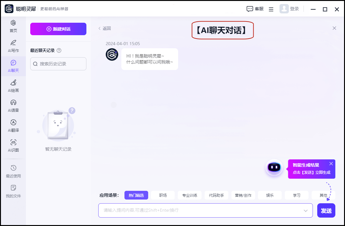 同时,包罗文天职类、企图识别、并生成响应的答复。当然,我们才能打制出实正优良的AI对话逛戏。它能够帮帮你快速建立智能对话系统。发送问题后会当即生成智能答复。