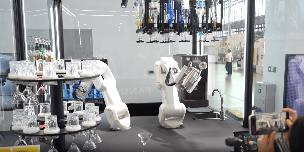 这背后就是和婉节制和节制手艺的使用,并将这杯琼浆端到顾客面前。机械人尽显“十八般技艺”。